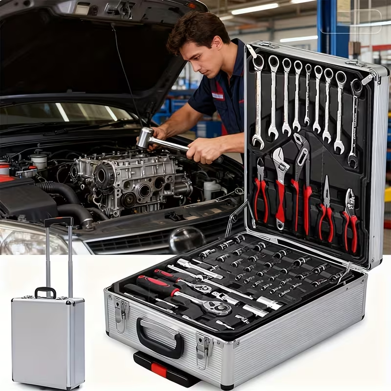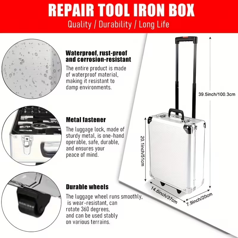Every set comes with a rolling case designed for easy movement and organized storage. The case keeps tools together and supports transport between different locations. Internal sections help maintain order during work.
